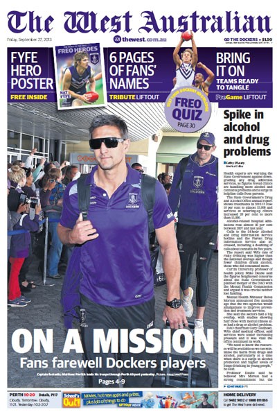 Front page of the day. It’s a veritable sea of purple on the front page of The West Australian today ahead of tomorrow’s grand final.