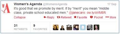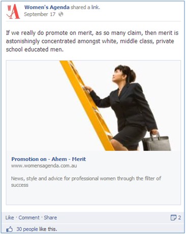 Take this Women’s Agenda story on getting promoted on the basis of merit. Here’s the tweet: