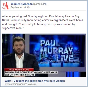 Here is another example. This one from Women’s Agenda. For a story headlined “Tony Abbott’s new Cabinet: Alarmed but not surprised” I compiled a couple of sentences from the story for a draft Facebook update. The draft update read:
