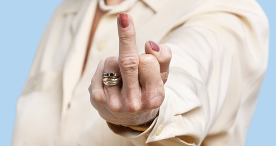 Over the last few decades, the middle finger gesture has in fact moved into the Auslan lexicon, and – by analogy with existing grammatical patterns within the language – it has become an indicating verb that can be modified in terms of location and movement to indicate person and number, as Adam Hills so nicely demonstrates here:
