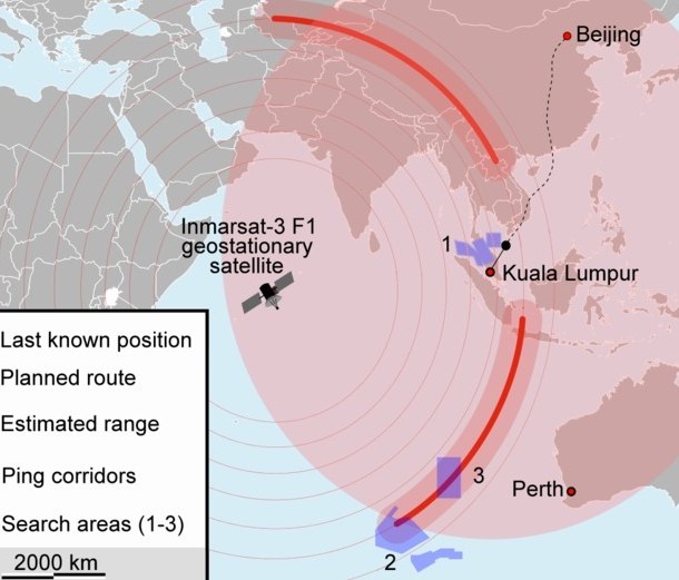 They provided the basis for the Malaysia decision to focus all search and recovery efforts on the southern arc of possible crash locations in the southern Indian Ocean south west to west of Perth, and which was later refined into a line of possibilities to the north west of Perth.