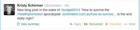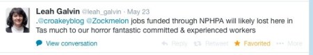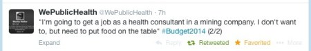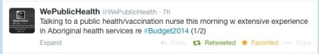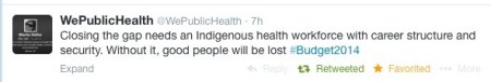 Meanwhile, Marita Hefler, who is guest tweeting for @WePublicHealth this week from Darwin, is also tracking the impact of the Budget upon the public health workforce…