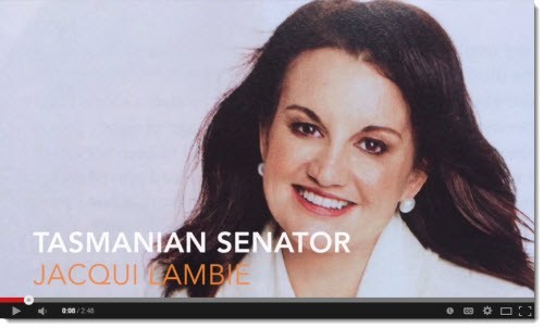Lambie talks north, heads south. We love it when politicians decide to get creative in the way they communicate with voters, and while using YouTube isn’t exactly groundbreaking, it is new for independent Senator Jacqui Lambie. Lambie decided to use her YouTube debut to take aim at Prime Minister Tony Abbott and the Queensland government, urging voters to put the LNP last on their ballot papers. Including some terrifying close-ups of photos from Lambie’s glossy women’s mag spread, the clip starts with the promising line, “Because I’m an independent senator for Tasmania, and I always try to put Tasmania first, I wouldn’t ordinarily involve myself in another state’s election”. Of course, Lambie goes on to get herself involved in another state’s election, as well as implying that the government is “giving away” too much foreign aid. She urges Queenslanders to put the LNP last and “if you want to kick Tony Abbott and his Liberal National mates in the shins … or a little bit higher … over the way they are treating our Defence families, then make your vote count in the Queensland state election”. That’s a low blow, Jacqui — keep it above the belt.