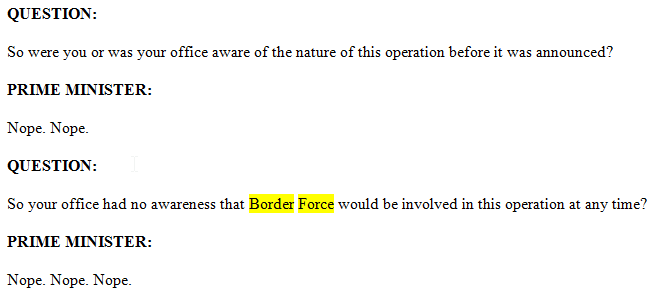 “It was an operational press release. There are all sorts of things that our operational agencies do, all sorts of press releases that go out from the Australian Federal Police, from the Australian Border Force, from government departments. All sorts of press releases go out all the time — but they go out under the authority of the relevant officials, they go out under the authority of the relevant agencies and that all happens at arm’s length from ministers. It all happens at arm’s length from the executive government.”