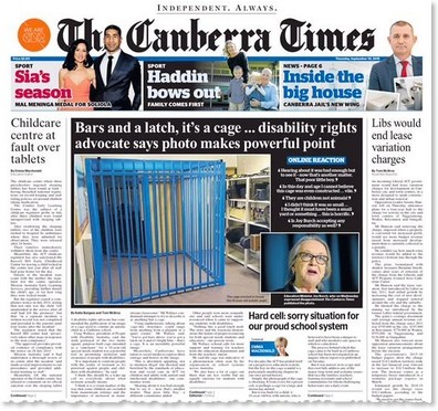 The Canberra Times doubled down this morning, republishing the image on its front page with an accompanying article interviewing disability rights activists who sanctioned the use of the image.