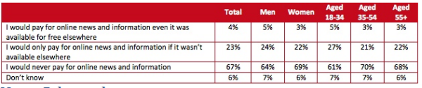 Just 23% of those polled said they would only pay for online news and information if it weren’t available elsewhere.