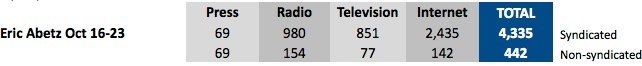According to media monitoring company Isentia, in the past week, he’s had 442 unique mentions in the media — a figure that swells 10-fold to 4335 if you include syndications. The online media loves talking about Abetz — he had 2435 online mentions this week, compared to only 69 in the print press. That said, we’re sure the online attention was mostly derisive — the internet has a known godless left-wing bias, after all …