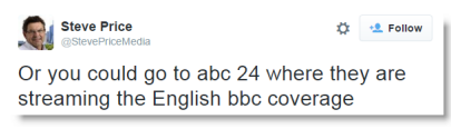 … and how not to react. Radio hack Steve Price was quick off the mark on Twitter on Saturday: