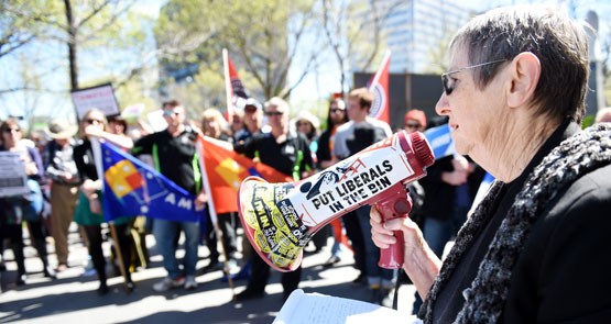 Sister Brigid Arthur at a rally protesting the treatment of asylum seekers