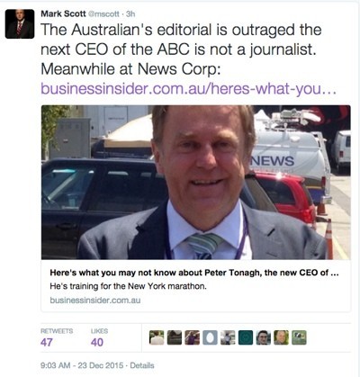 To which Mark Scott tweeted an article about News Corp chief Peter Tonagh …
