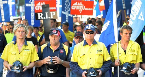 Construction workers march in 2009 as part of a protest calling for the abolition of the ABCC