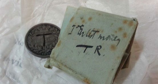 The coin has been handed down in the Roberts family for generations, engraved with the letter T. It had a note that read “1st artist money TR”. Roberts says she handed the coin to Bruce Parncutt, former president of the National Gallery of Victoria’s council of trustees, and he says he passed it to Napthali.