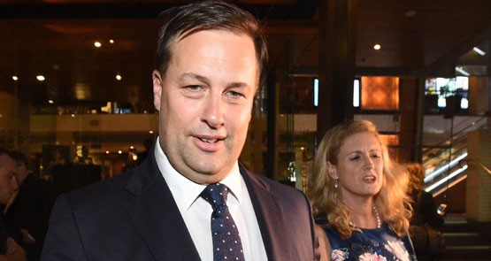 Jason Falinski leaves the Liberal Party preselection meeting on Saturday night
