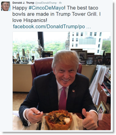Trump obviously did not take the high road, because why start now? “I am not ready to support Speaker Ryan’s agenda,” he said in a statement (young, handsome and telegenic Ryan’s agenda may or may not include trying to snatch the nomination. He says he won’t, but people don’t always mean things like that). But you know who he is willing to support? Hispanics! Except, of course, for the ones in Mexico who would like to come to the US …