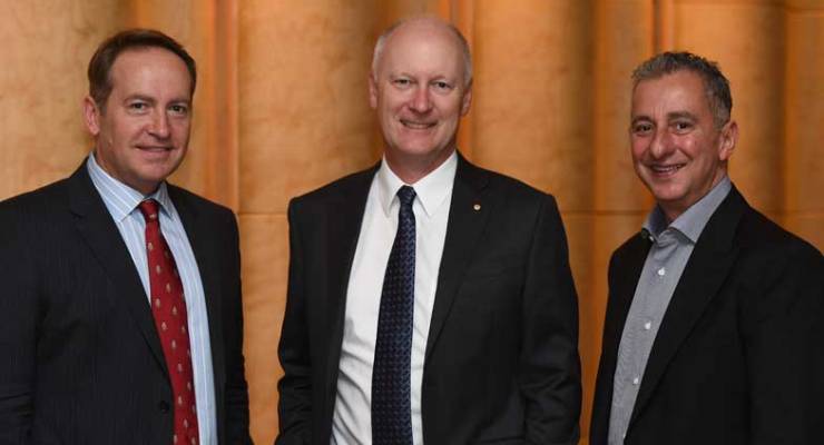 Wesfarmers CEO Richard Goyder (centre) with Bunnings boss John Gillam (left) and Target and Kmart boss Guy Russo
