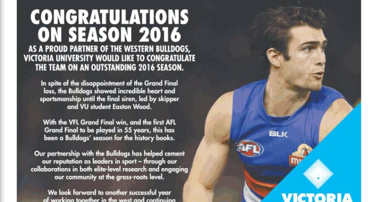 “We acknowledge a mistake made in today’s paper regarding Victoria University and the Western Bulldogs. An advertisement was run congratulating the Western Bulldogs on an outstanding 2016 season, instead of one celebrating their Grand Final victory. This was the result of a breakdown in our ad system. We apologise to both Vic Uni and the Western Bulldogs.”