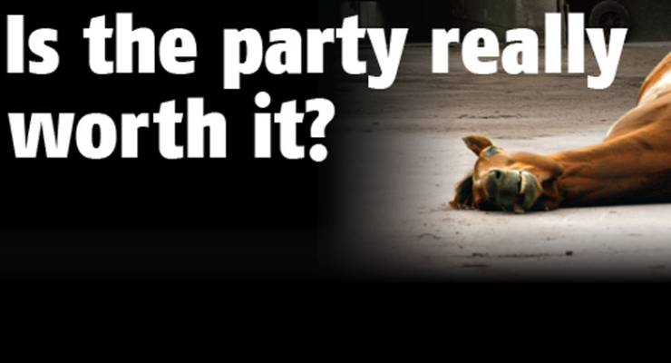Strategically placed right in front of an advertisement for the upcoming Spring horse racing program, the billboard featured a dead horse lying on the ground along with the tagline, “Is the party really worth it?”.