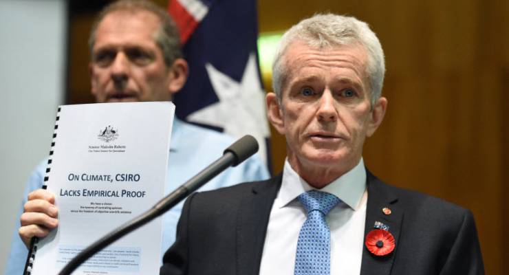 An exuberant Roberts launched into the conference waving a 40-page document (claims linked here) that he claims debunks the evidence the CSIRO gave him in a private briefing about climate change.
