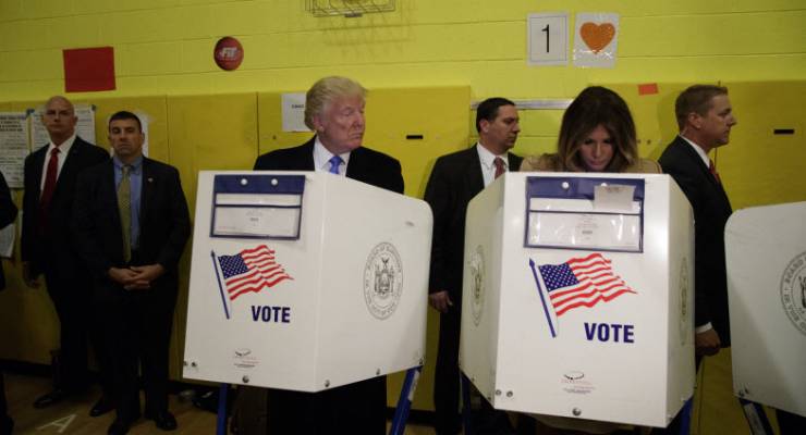 “Go to bed! Go to bed! Got to bed and vote in the morning! Tomorrow we’re going to (all join in) MAKE AMERICA GREAT AGAIN!” He’s gone in a puff of theatre smoke, and a fresh spray of laser light, back to New York, to his gold tower, and his “victory” party, 20 blocks from Clinton’s — champion of the people, on an island moored off the coast of America, watching it come apart on TV, breaking off only, at regular intervals, to wash clean his hands.