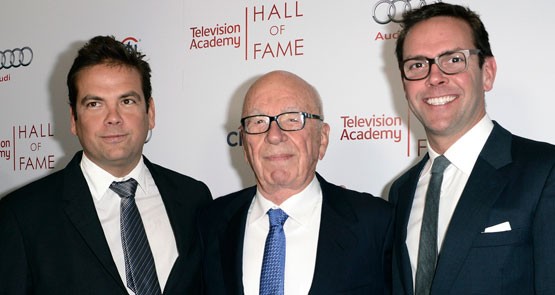 The three highly paid Murdoch men had the top three positions next to the microphone, and after Rupert Murdoch mumbled his way through a four-minute written statement with no slides, he handed over to co-chairman Lachlan Murdoch, who ran the meeting.