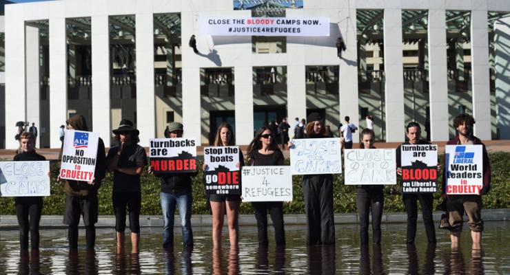 About 20 people from the Whistleblowers, Activists + Citizens Alliance began chanting just a few minutes after question time got underway, protesting against the treatment of asylum seekers in offshore detention.