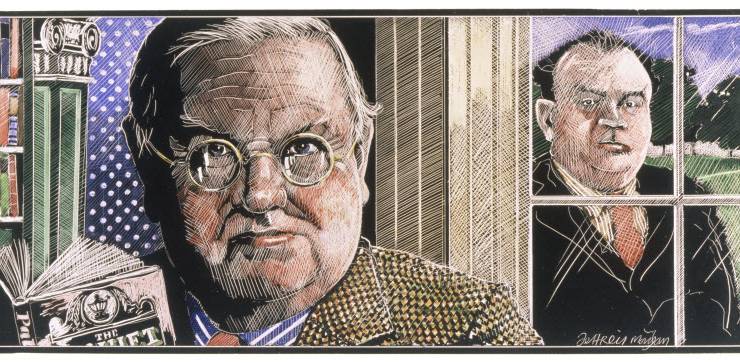 A portrait of author Evelyn Waugh and magazine editor Cyril Connolly