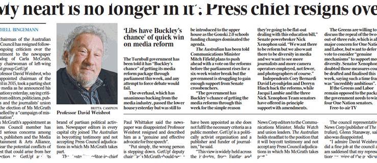 As he cleared out his desk after resigning yesterday as chair of the Australian Press Council (APC), maybe it crossed Professor David Weisbrot’s crestfallen mind that he might now seek some solace by lodging a private complaint with the APC against The Australian for the way it has hounded him from his position. Few would blame him.