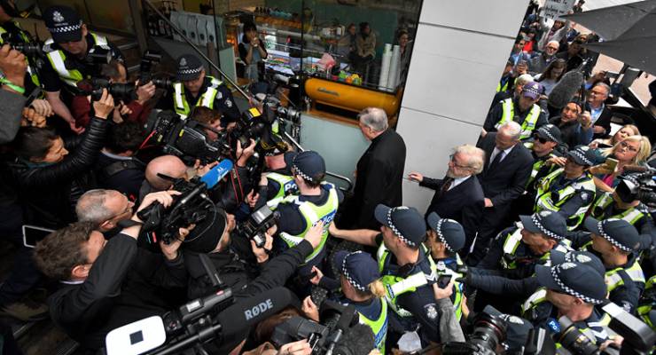 The parameters of what’s known publicly means certain phrases come up from every TV reporter — “… multiple allegations …” “… strenuously denies” “… the highest-ranking Catholic to have had charges brought against him …” “… he says he’s looking forward to clearing his name …” “… not just Australian media, but the eyes of the world are on Melbourne …”