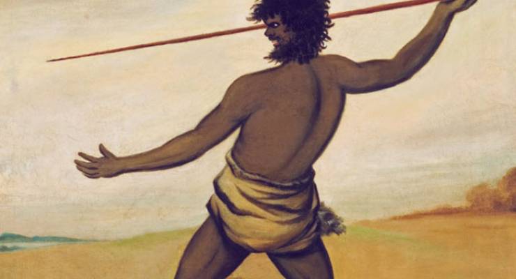 Image: Timmy, a Tasmanian Aboriginal, throwing a spear. Benjamin Duterrau, (1838) Art Gallery of South Australia.