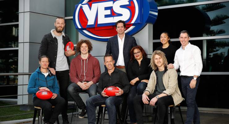The first reporting of the AFL’s stance on Wednesday came as AFL staff tweeted photos of the Yes sign replacing the AFL logo out the front of the league’s Docklands headquarters. Reporters were invited to a photo shoot with prominent men’s and women’s players, coaches and officials, and the league announced that balls reading “Yes” would be sent to clubs and local leagues this weekend.