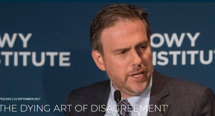Last Saturday, US journalist Bret Stephens brought his blandishments to local media in a nice American accent. The ideas that he offered in a widely celebrated speech — Peter Greste called it “brilliant”; Mike Carlton felt the urge to punctuate his esteem — were just those that you might hear at any one of our frequent and terrifically unambitious writers’ festivals. You know the sort of thing: the greatest menace to our liberal democracies are spoiled kids at expensive universities who don’t want to hear Milo Yiannopoulos talk shit. If only we could speak with each other nicely, as we always did in olden times. (This call for civility from a guy who once publicly diagnosed “the disease of the Arab mind” after watching a judo match on telly.)