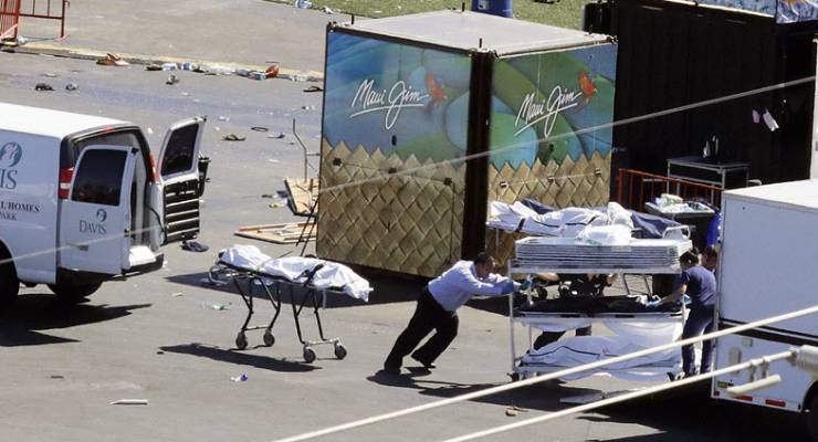 Apparently roadies associated with the music festival — and who-knows-how-many in the audience — had concealed weapons but how could that have helped? Assuming they had a good fix on where the bullets were coming from, what good is a hand gun for that distance at night anyhow?