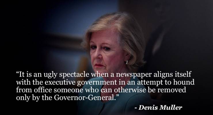 “It is an ugly spectacle when a newspaper aligns itself with the executive government in an attempt to hound from office someone who can otherwise be removed only by the Governor-General,” wrote another academic and former newspaper editor, Denis Muller, in The Conversation. As a media insider, Muller understands the true motives better than most, namely “the advancement of The Australian‘s own self-interest or the settling of personal scores”.