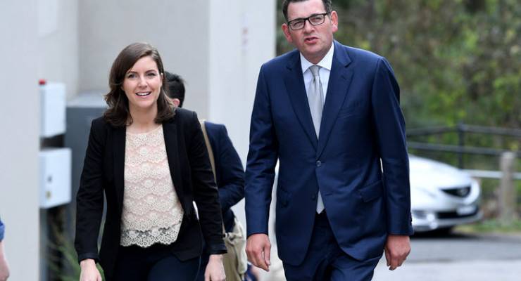 Victorian Premier Daniel Andrews and Labor candidate for the Northcote byelection Clare Burns