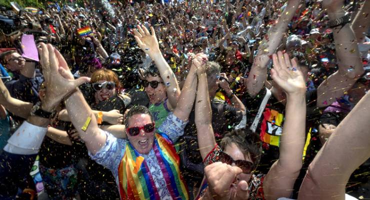 Then finally there a number — 61.6%. But most of us wouldn’t hear that properly until later, all we knew was that it was a resounding YES. Every state, almost every electorate — YES. Rainbow coloured powder, confetti and sequins were catapulted into the air, with those in the front rows wearing most of the powder.