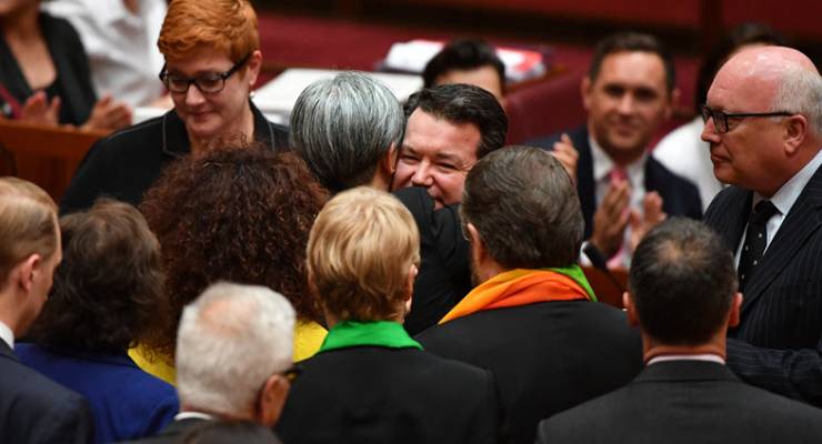 I wasn’t there for all those political dramas, but I’m pretty sure the atmosphere in the Senate chamber yesterday as we counted down and finally passed the law to make same sex marriage legal in Australia, was right up there with them.