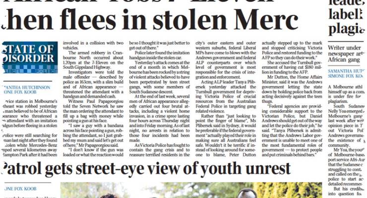 The “African gang” scare emerged from the Herald Sun’s law and order campaign as the practices of the post-Brexit British red-tops and the post-Trump right-wing US media seeped into Australian tabloids — even into the Herald Sun, which has attempted to position itself as a better class of tabloid.