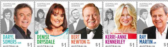 Don’t mention the culture war. Nothing but sequins and glamour at yesterdays’ Official Australia Luncheon in Victoria at the cavernous Melbourne Room at Jeff’s Shed. Ray Martin, Kerri-Anne Kennerley, Bert Newton, Daryl Somers and Denise Drysdale were called to draw on their worst TV moments as a promotion for  the new Australia Post telly stars stamp series.