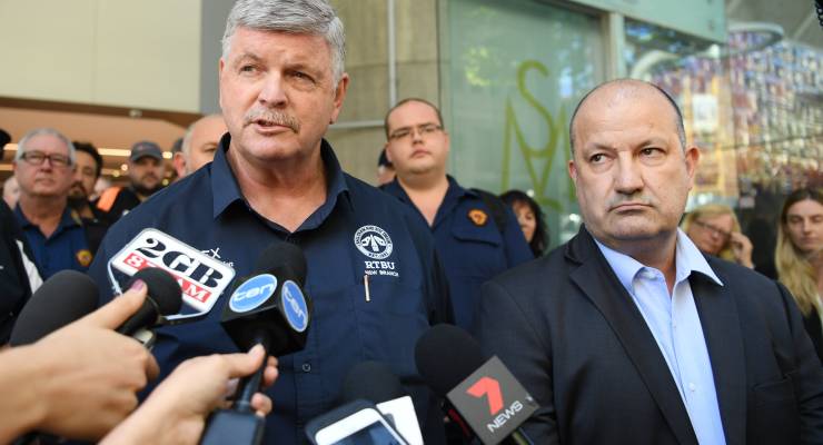RTBU NSW Secretary Alex Claassens (left) and Secretary of Unions NSW Mark Morey