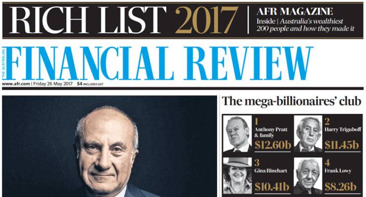 The Oz said Stensholt “will head up a new unit dedicated to developing content about Australia’s most successful companies and individuals”. One of the areas for Stensholt is to develop lists — a rival for the Rich List is on the cards. The next AFR Rich List is due late next month and is all but finished, except for the last round of checking, editing, etc.