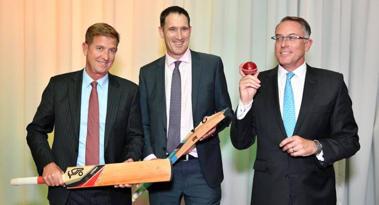 Seven West Media CEO Tim Worner, Cricket Australia CEO James Sutherland, and Fox Sports CEO Patrick Delaney