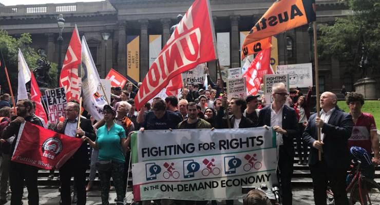 Protest against the conditions for food delivery riders, in Melbourne earlier this year