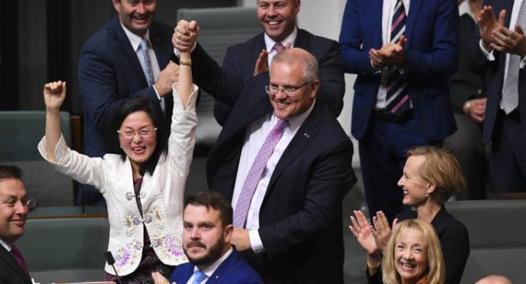 We were premature in thinking that Scott Morrison would be haunted by the image of him cradling a lump of black coal. There’s an even better parliamentary picture: Scott, holding aloft the hand of the freshly elected Liberal Member for Chisholm, Gladys Liu.
