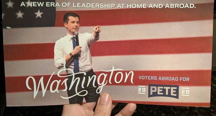 Our Crikey tipster received a flyer to their inner-Sydney home addressed to a former US-expat tenant, asking them to vote for Mayor Pete in 2020.