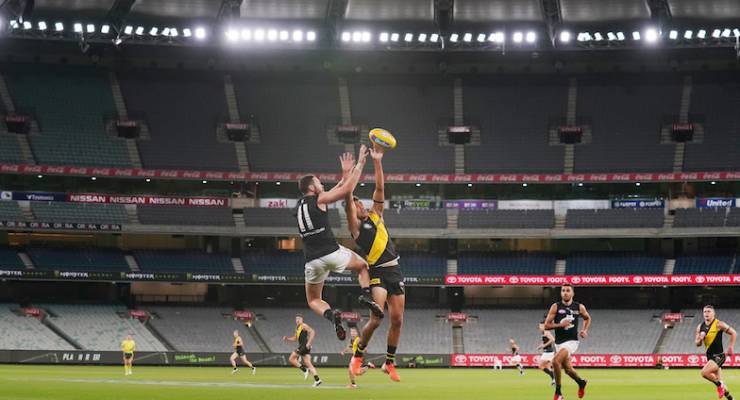 The return of the AFL to a near-silent MCG last night saw Seven score a rare win for the night. The broadcast secured a solid 1.02 million nationally on Seven and 339,000 on Foxtel (1.36 million in total). The NRL, however, was thrashed — 575,000 on Nine and 226,000 on Foxtel, for a total of 801,000.