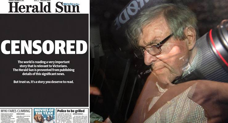 The Herald Sun ran a dramatic black front page with CENSORED in white letters. The Advertiser’s website read: “NATION’S BIGGEST STORY: The story we can’t report”, while the Australian Financial Review reported: “Judge slams ‘flagrant’ media over world’s worst kept secret”.