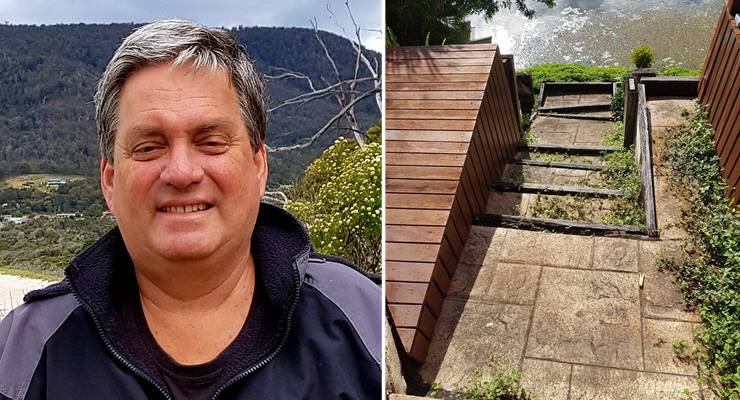 But the stairs leading down to the lake are uneven and steep, with bumps on the path sticking up seven centimetres. In a commissioned assessment of the property, a builder warned the backyard presented deadly risks.