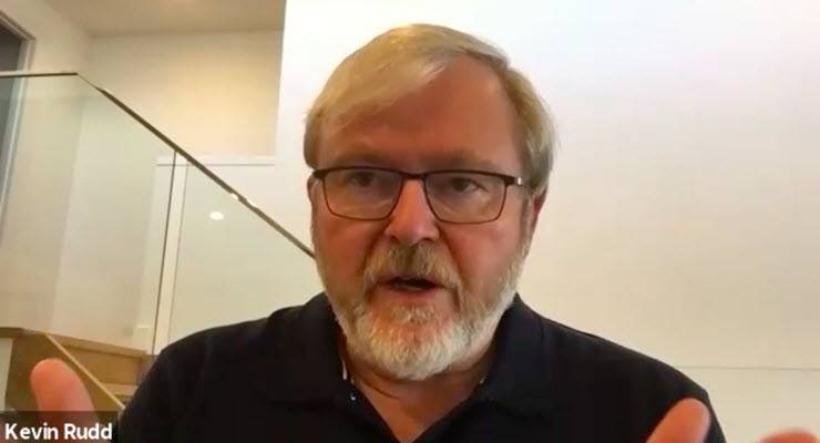 “In creating two warring states in America, our friend Rupert has had a big role to play in that,” Rudd told an exclusive talk for Crikey subscribers.