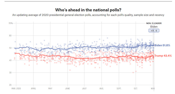 Polls — even this week in the US — are not necessarily “wrong” about what they’re measuring. Biden’s popular vote margin probably will end up around the average forecast of 6-7% with an electoral college vote at Obama levels.