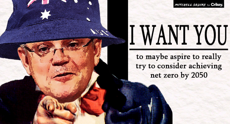First, there is no 2050 net zero target, despite the press gallery trying to heroicise Scott Morrison for saying words like “preferably”. Even senior gallery journalists are peddling the narrative that Morrison is bravely shifting the Coalition toward climate action — the same journalists who instantly scream “Labor leadership crisis” if there’s any dispute within opposition ranks over climate.